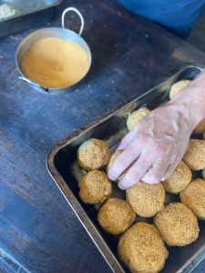 קוצצים דק את הלימון הכבוש ומערבבים עם הבשר הטחון. מתבלים במלח ופפריקה מעושנת.