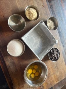 ממיסים בקערה שמן קוקוס ושוקולד. מוסיפים את הסוכר, הקקאו ומערבבים היטב. מוסיפים את הביצים אחת אחת ומערבבים ואז מוסיפים את הקמחים.